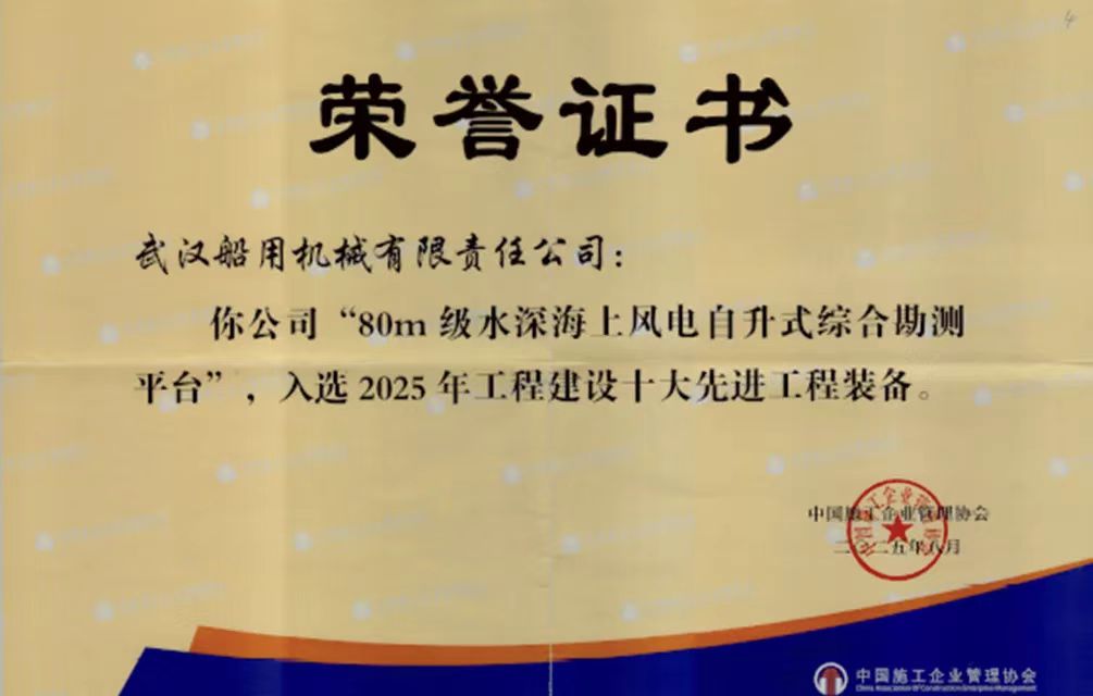 近日,2025年工程建設(shè)十大先進工程裝備名單正式公布, “80m級水深海上風(fēng)電自升式綜合勘測平臺”成功入選。該平臺是中船集團武漢船機總包建造的“華東院308”平臺,中國電建集團華東勘測設(shè)計研究院有限公司等多家單位共同研制。作為當(dāng)前我國技術(shù)指標(biāo)先進的海洋新能源綜合勘測平臺,在深遠(yuǎn)海風(fēng)電勘測實際工程應(yīng)用中發(fā)揮了突出作用。